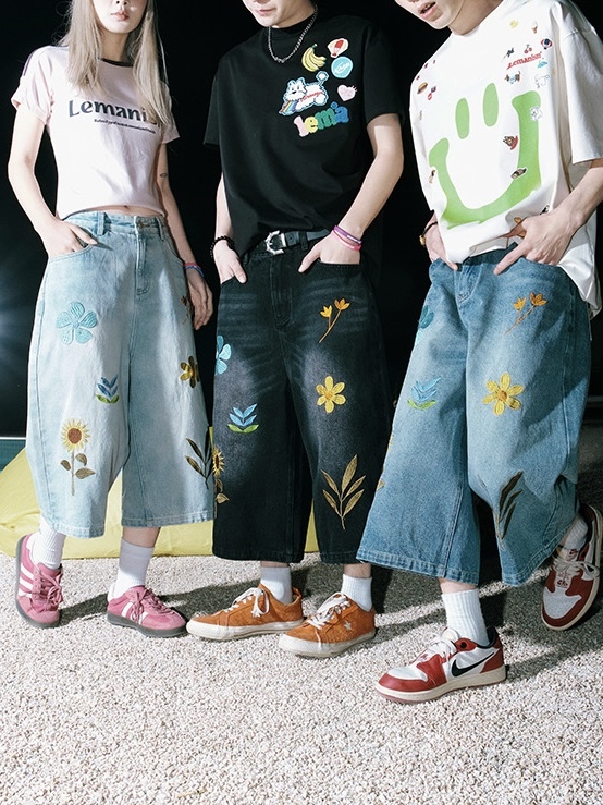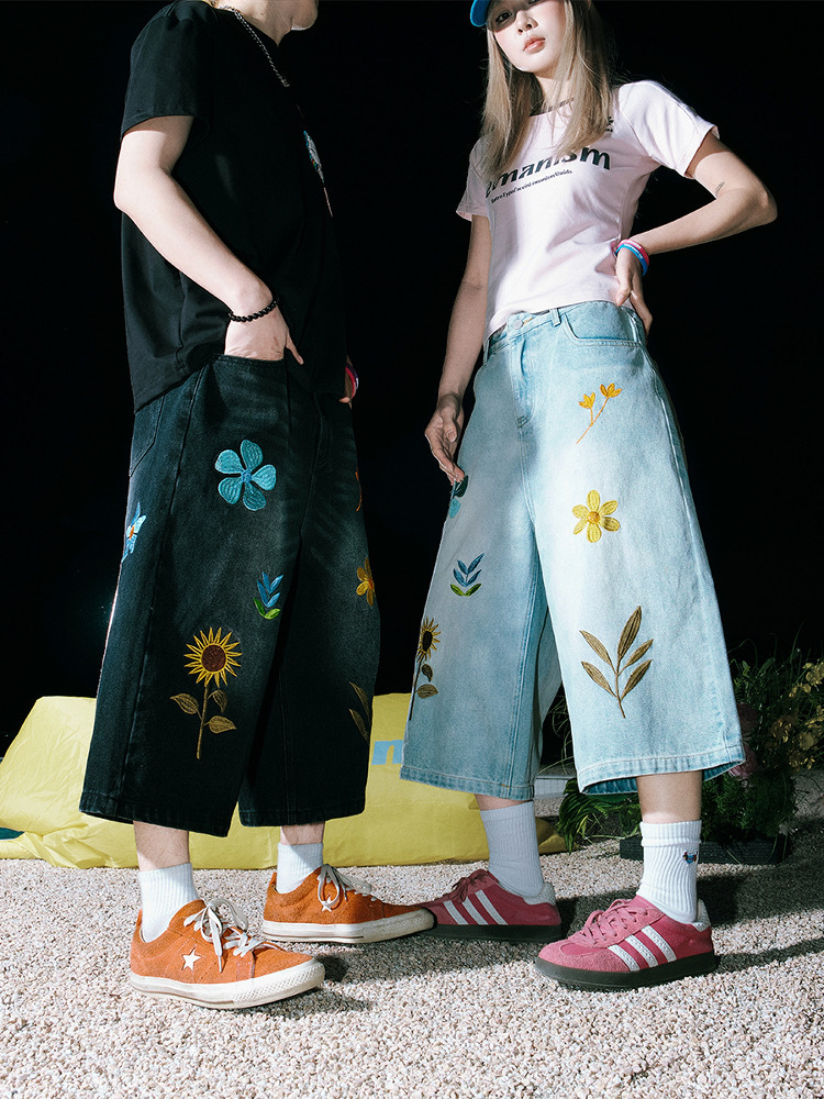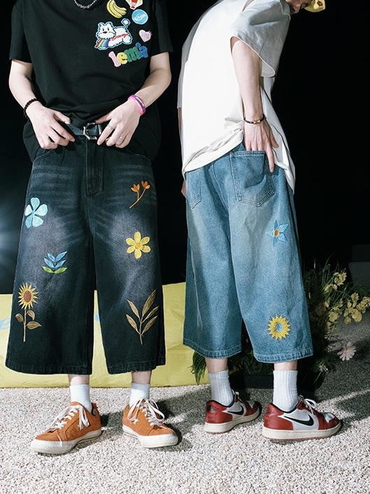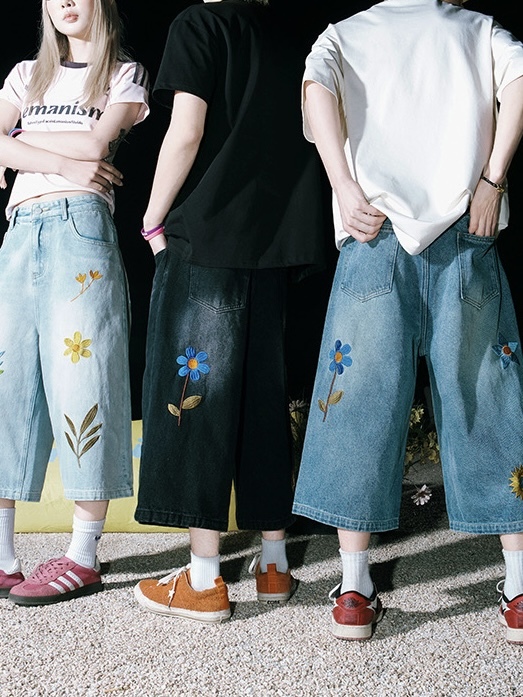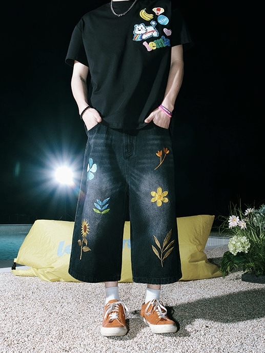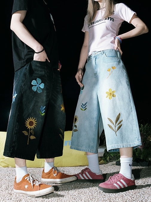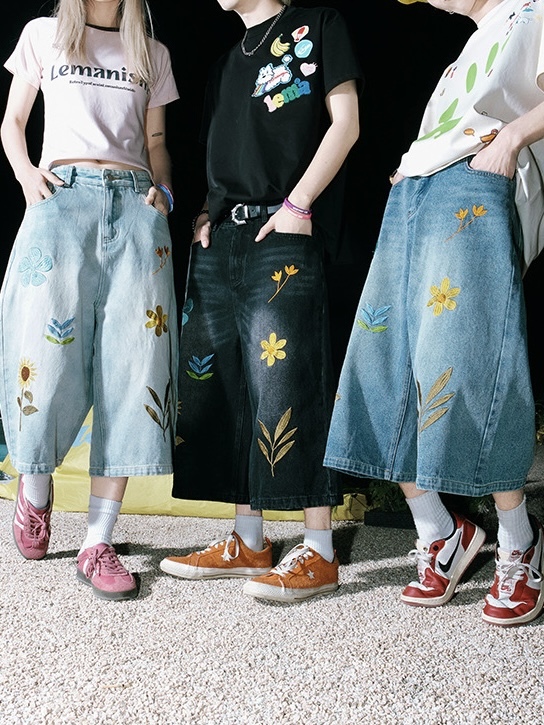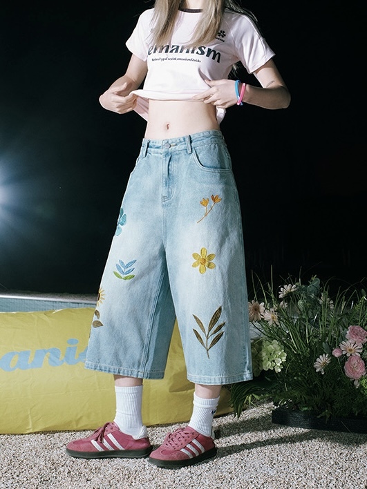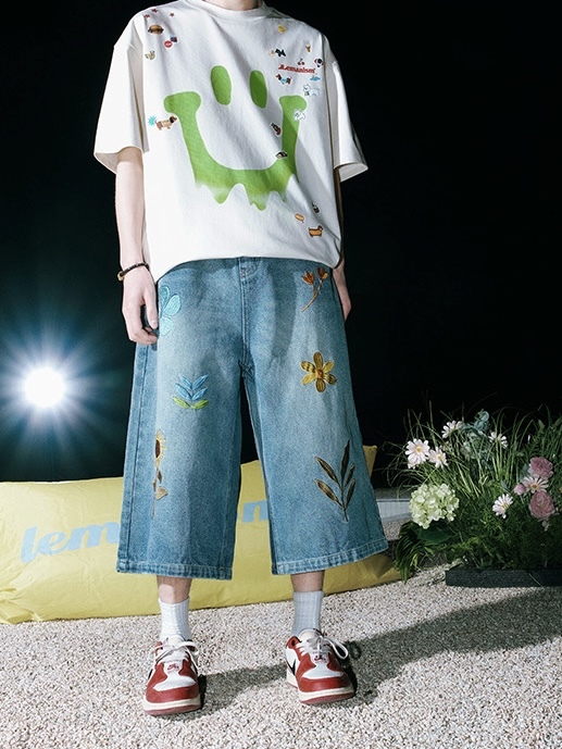 LEMANISM 花卉刺繡 牛仔 七分褲