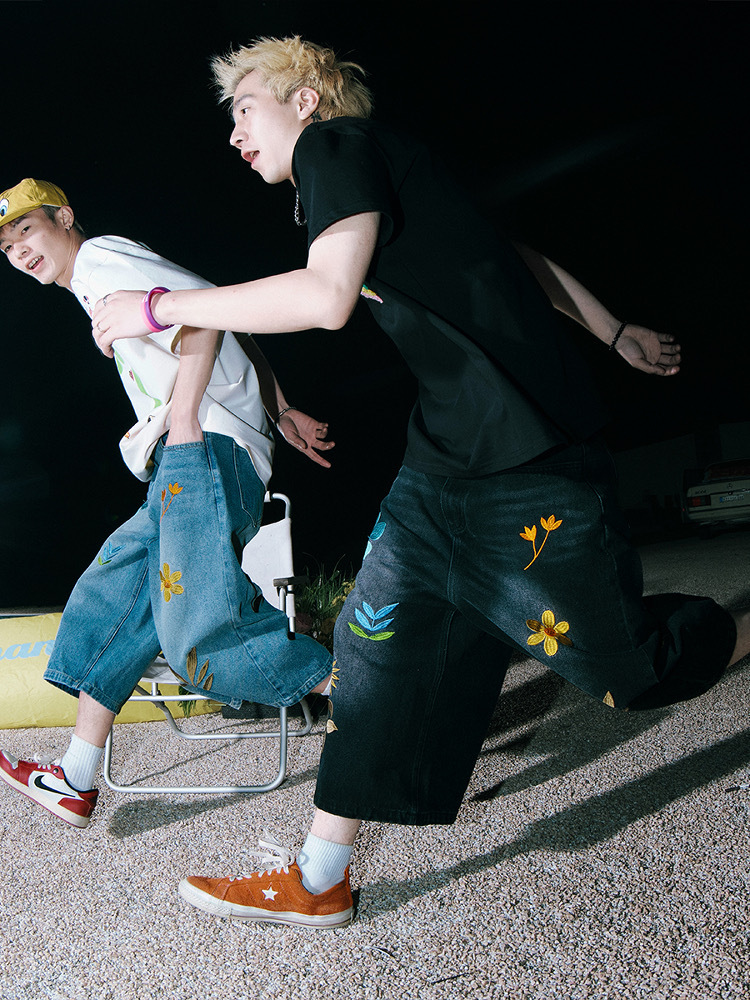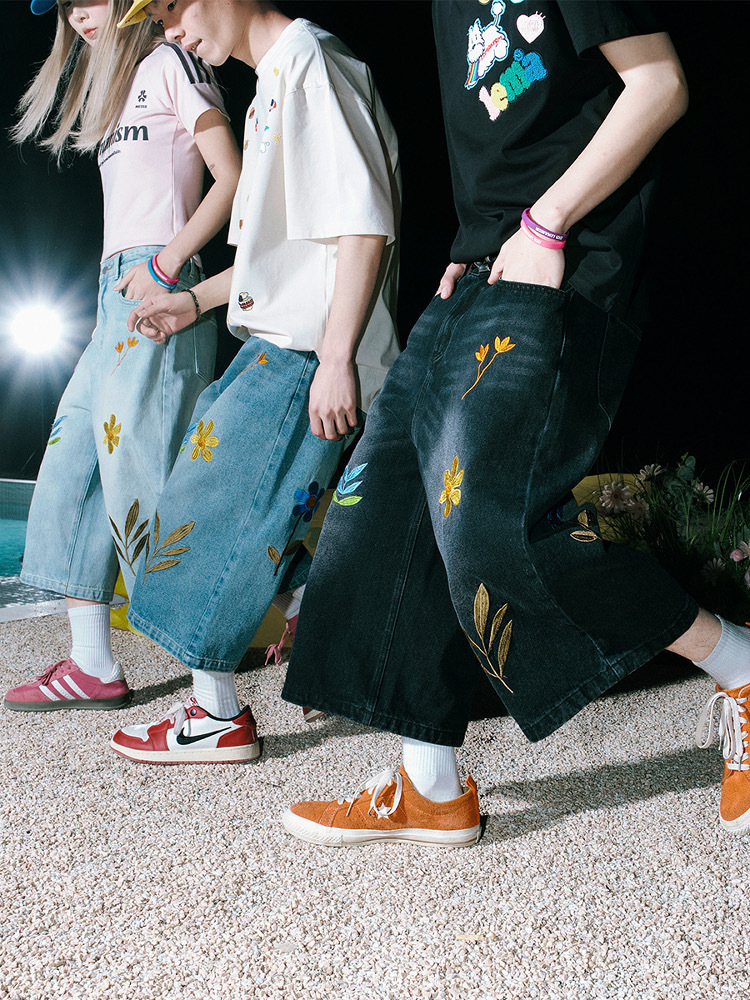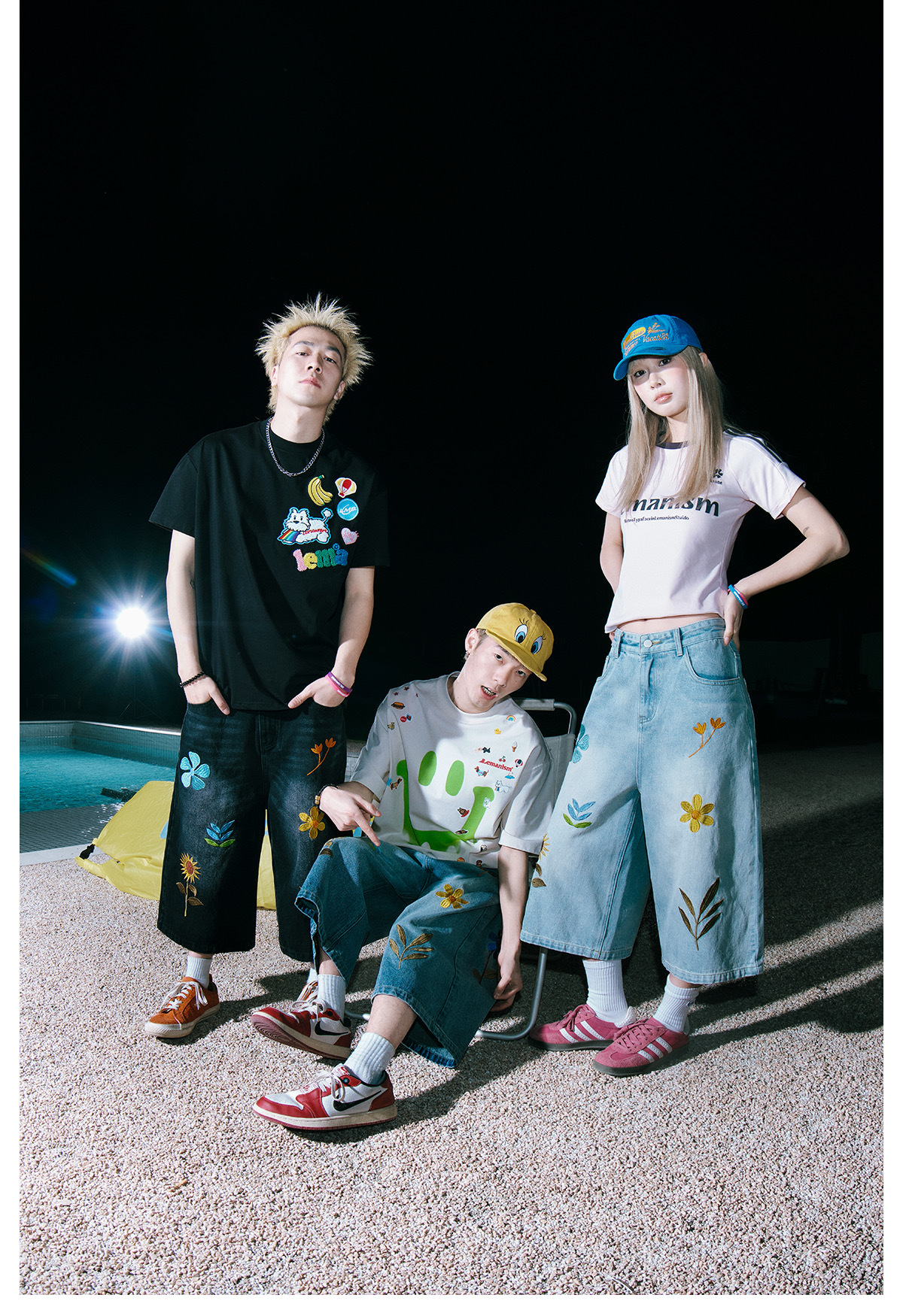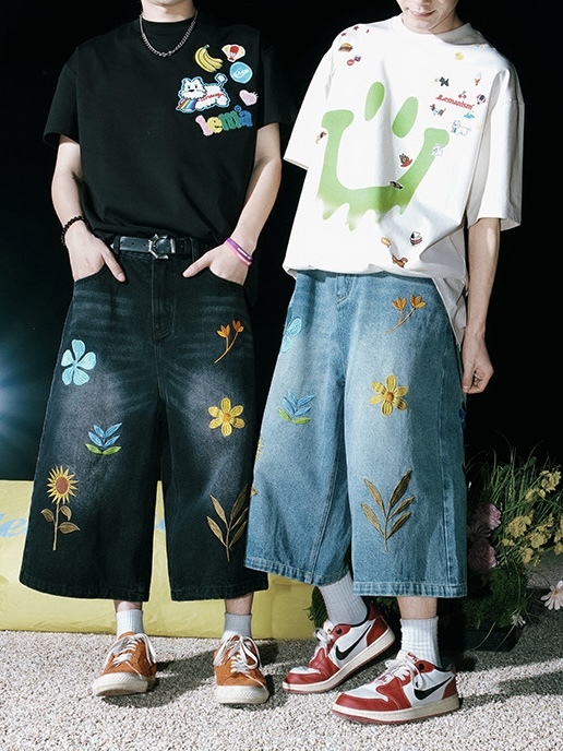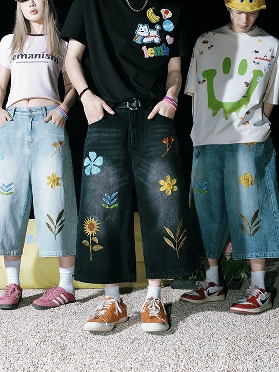 LEMANISM 花卉刺繡 牛仔 七分褲