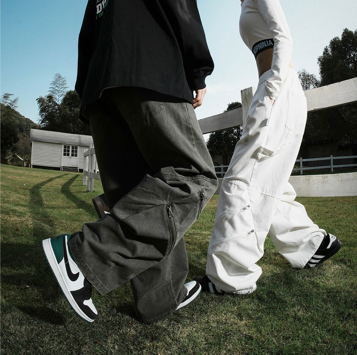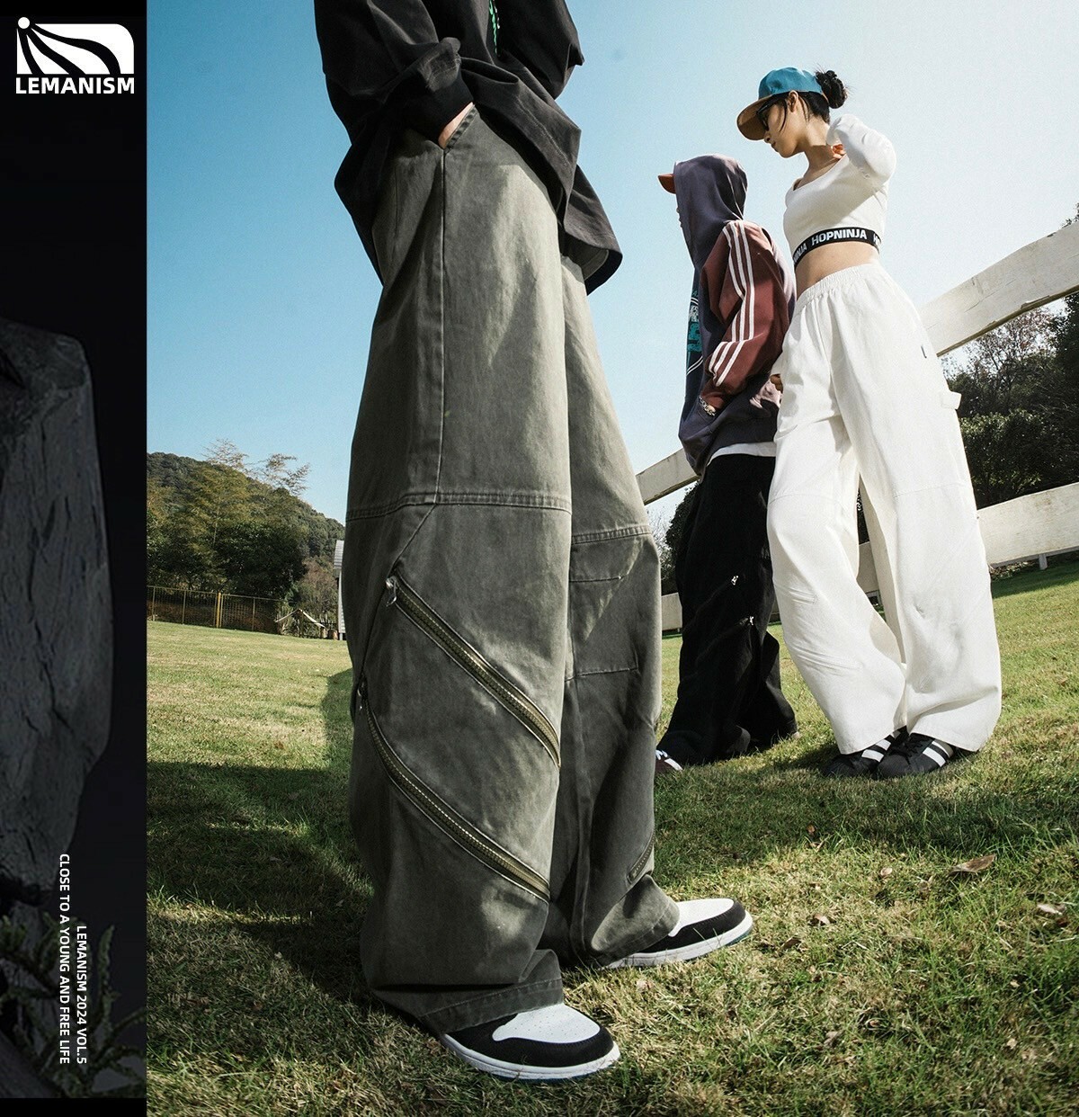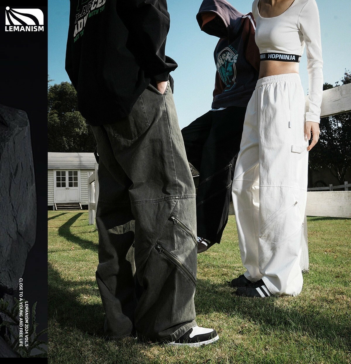 LEMANISM 復古 拉鍊 拼接 工裝褲