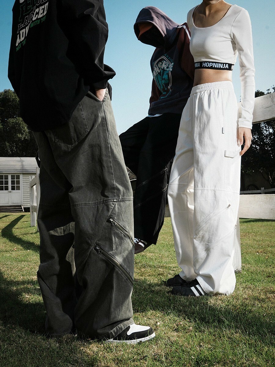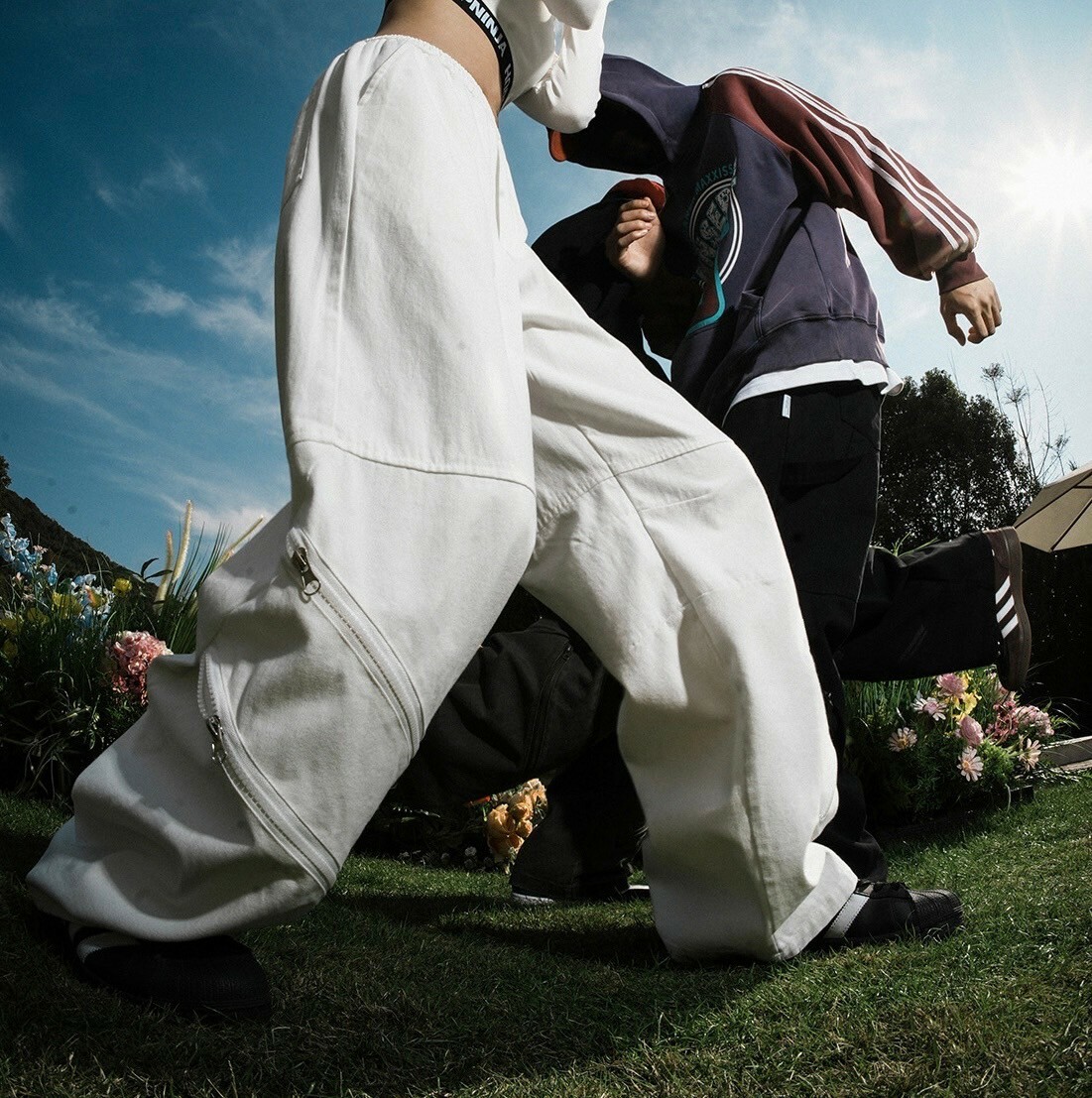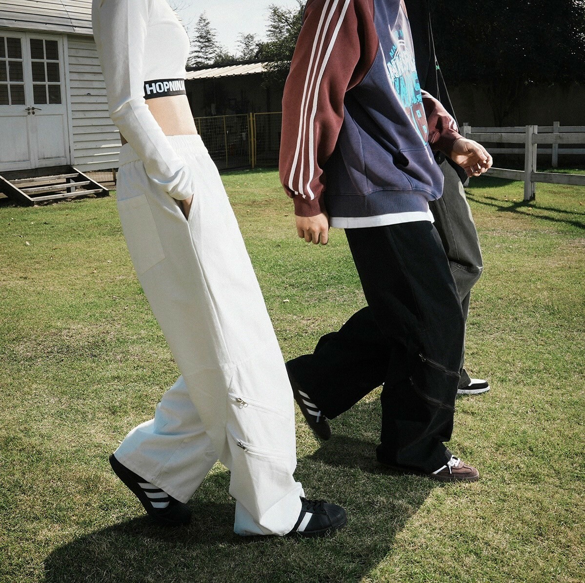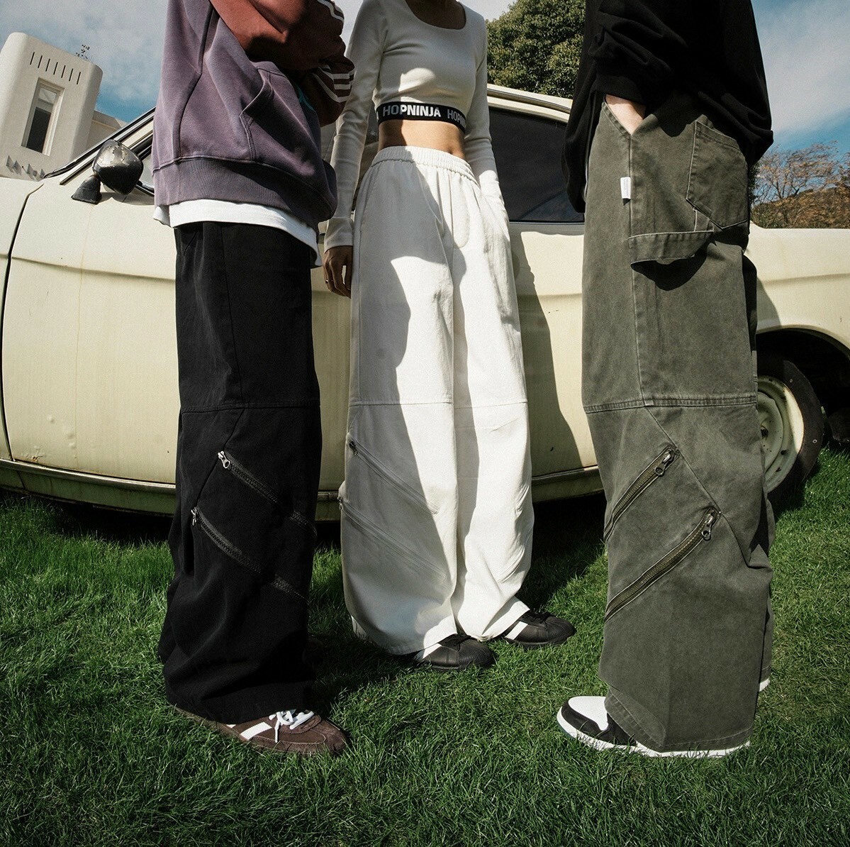 LEMANISM 復古 拉鍊 拼接 工裝褲