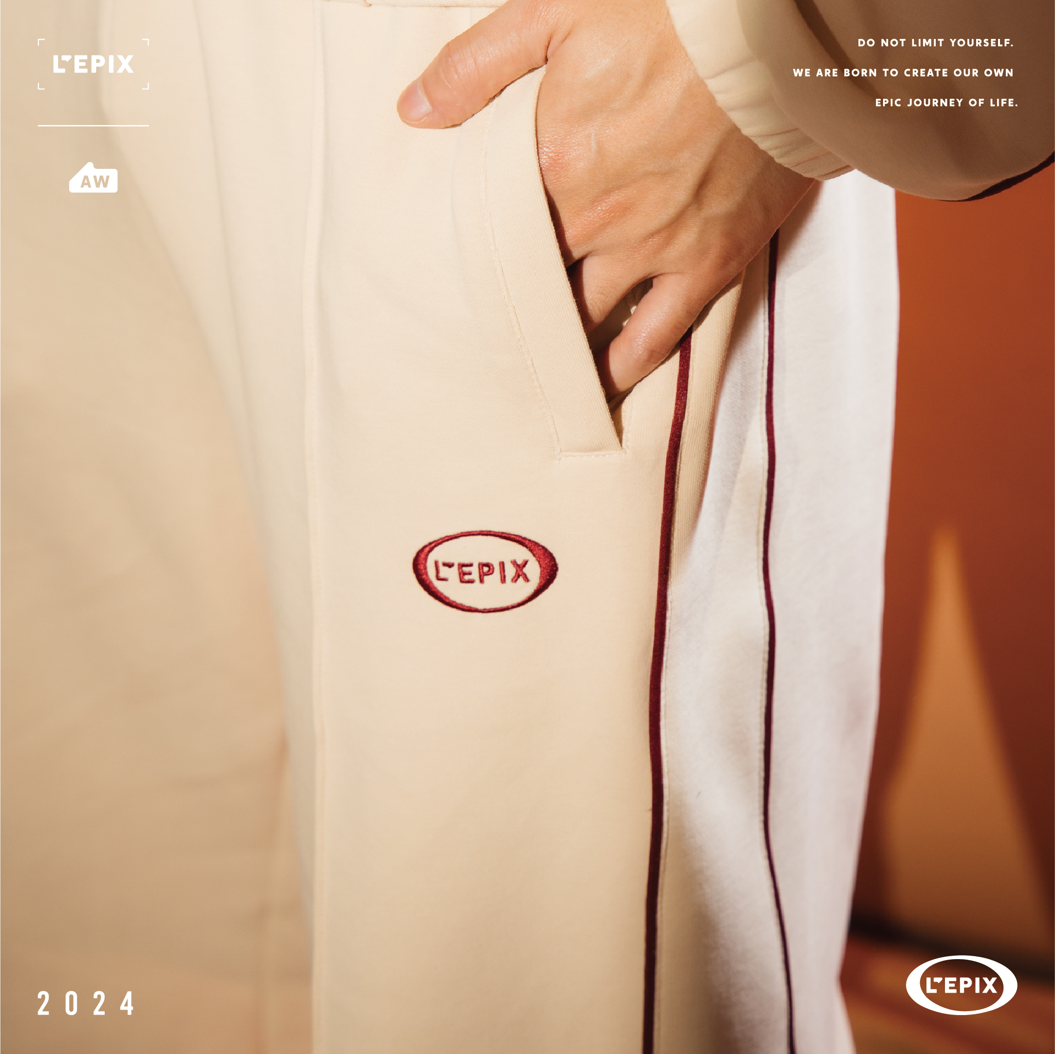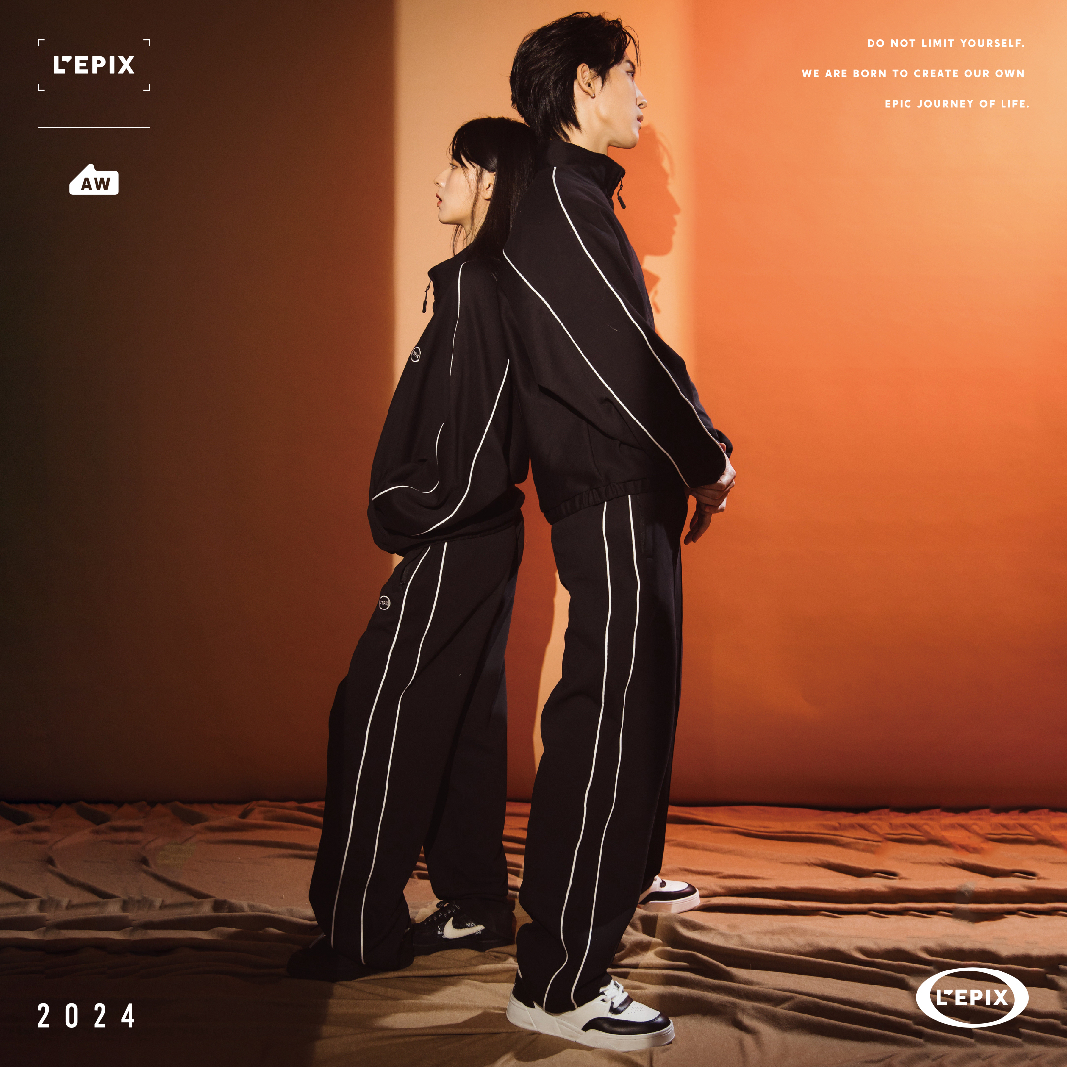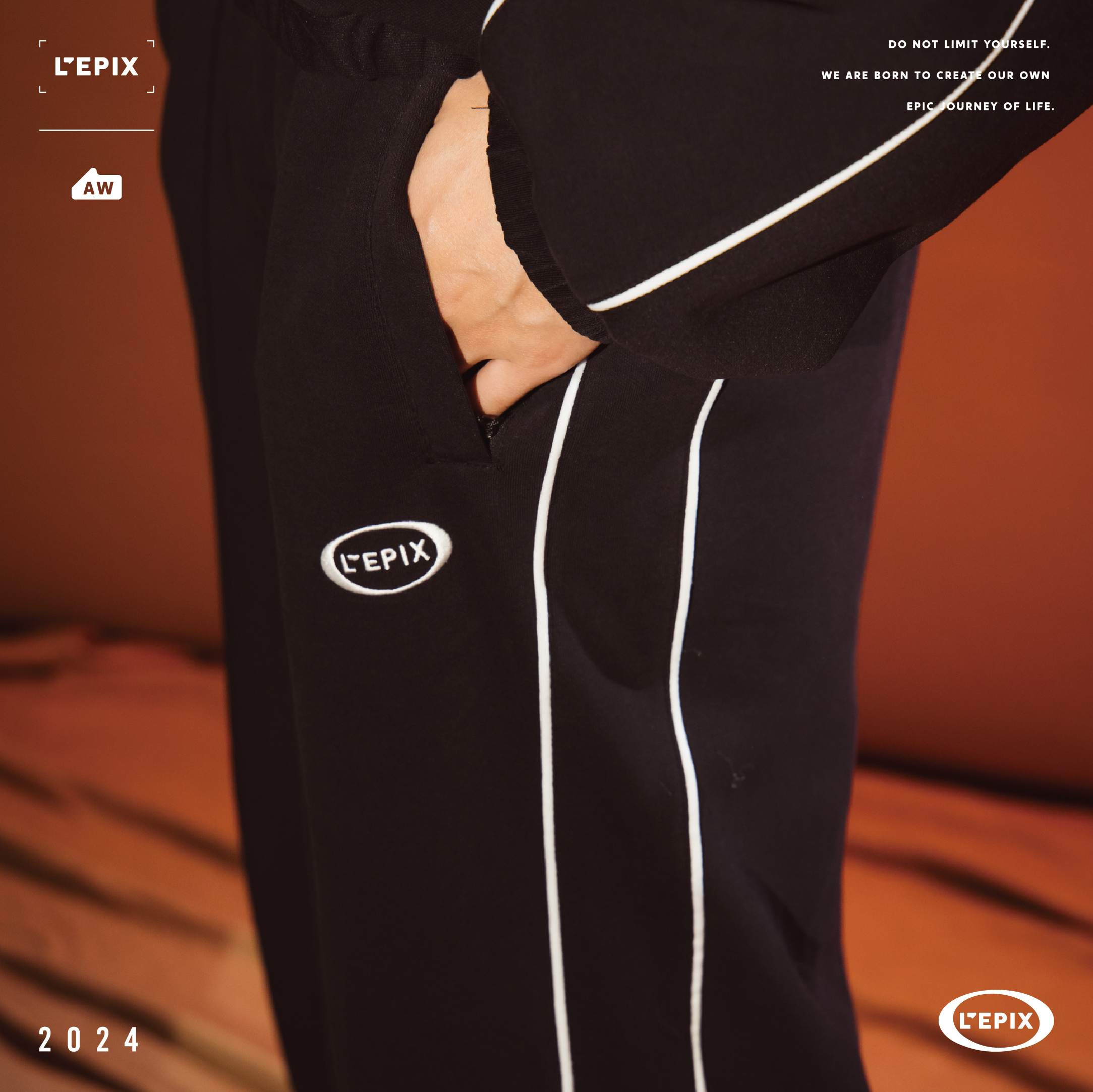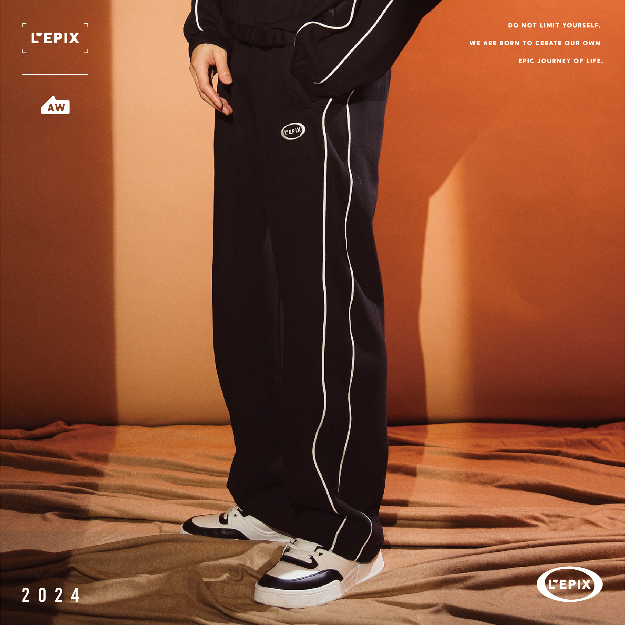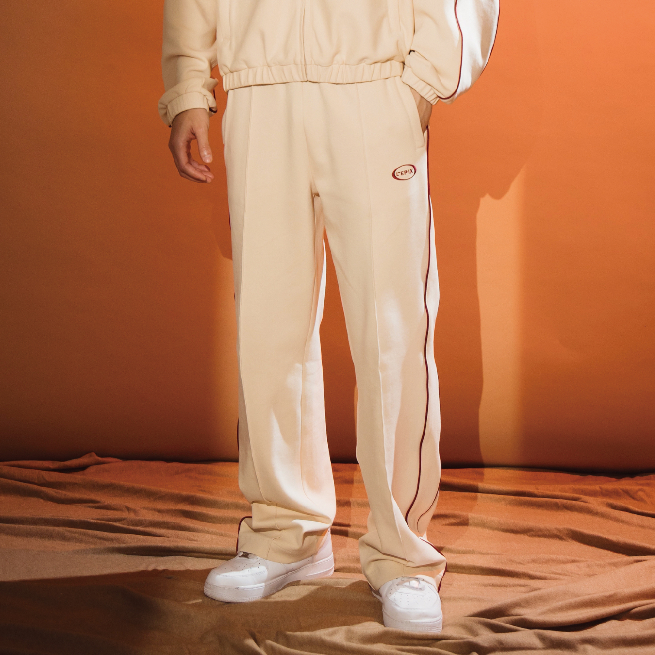 L'EPIX Black logo Track Pants 24 A/W 黑色/奶油色經典運動長褲