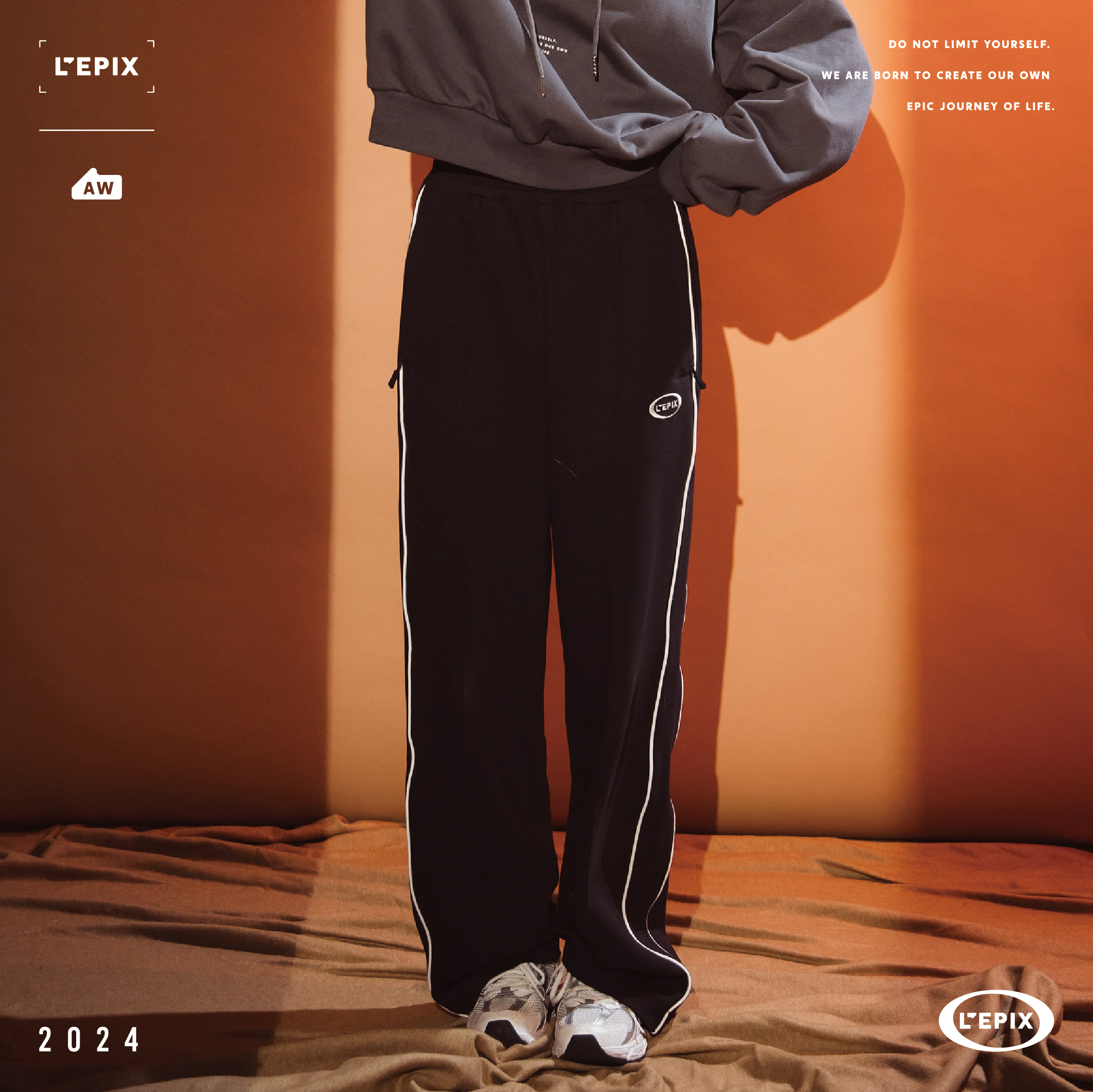 此次運動褲選擇最百搭的休閒寬鬆褲型,設計以小直筒為基底,褲子兩側出牙白線條,讓褲子在穿搭有不同的點綴,上身效果非常修長顯瘦,可以搭配任何服飾上身單品.