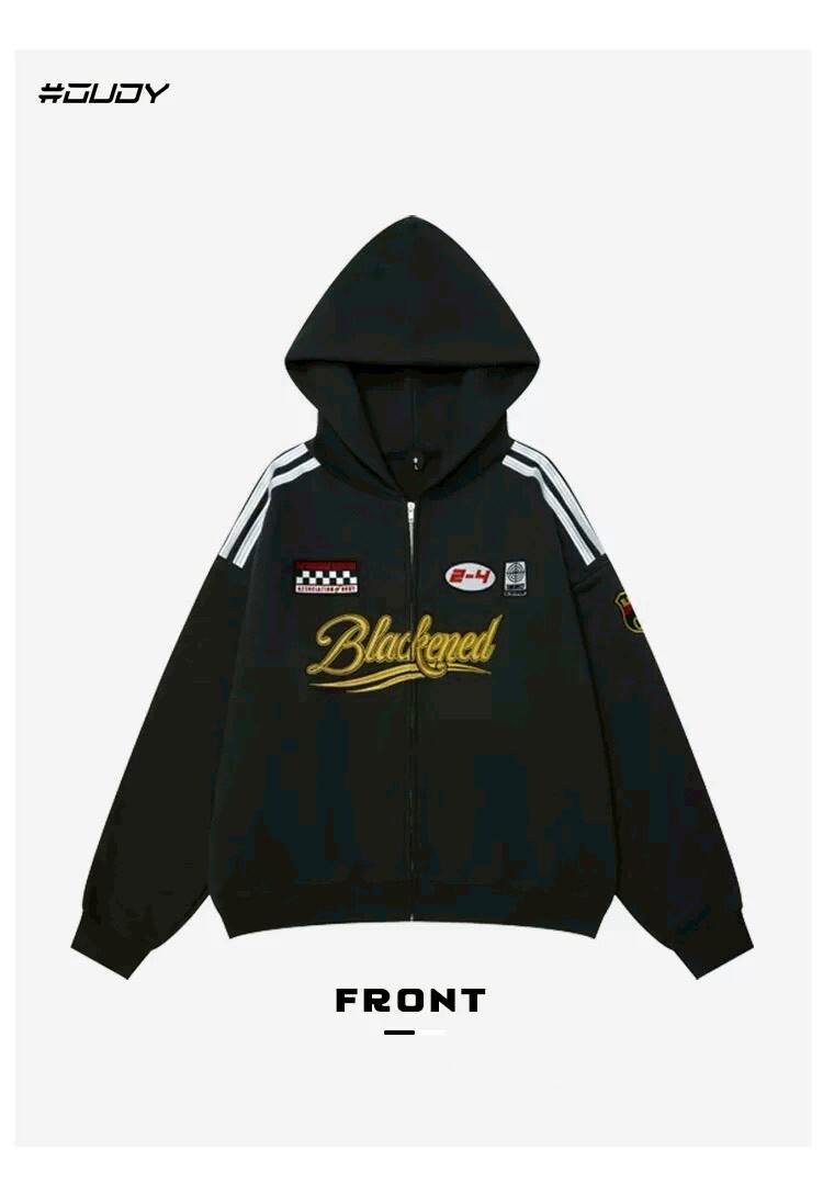 OVDY 美式字體圖標拉鍊外套
