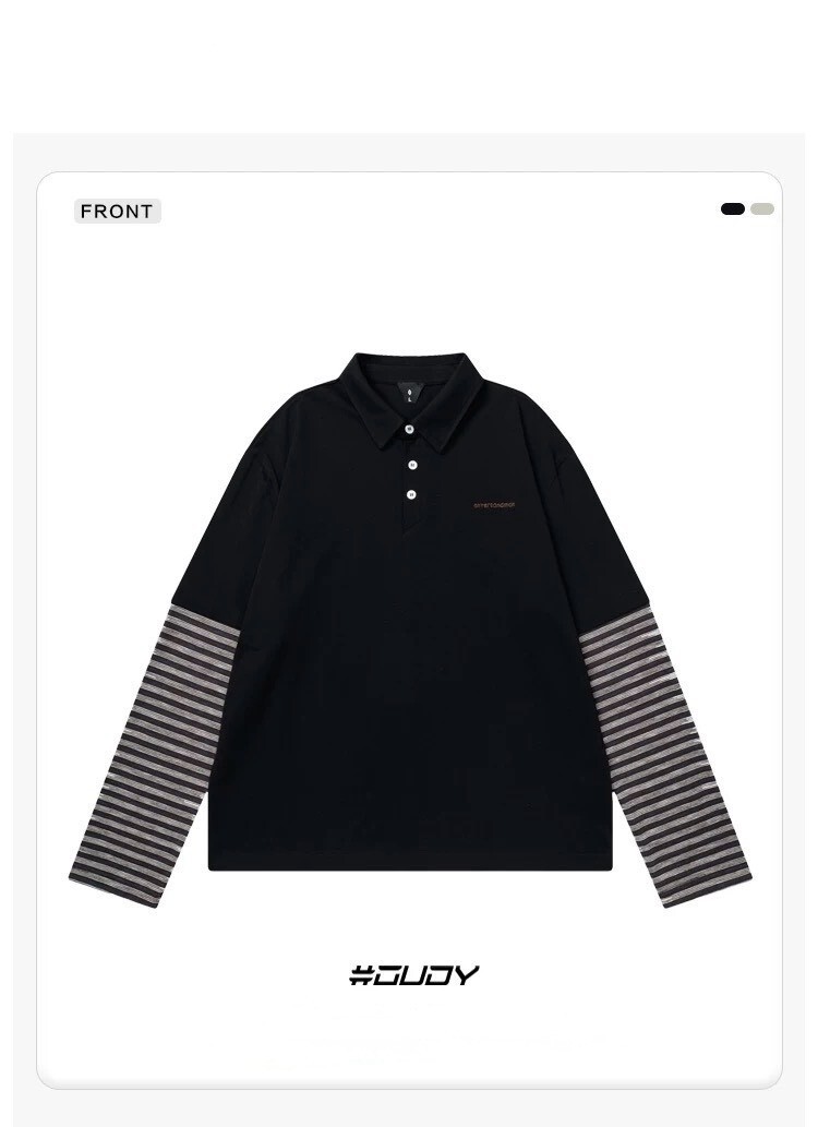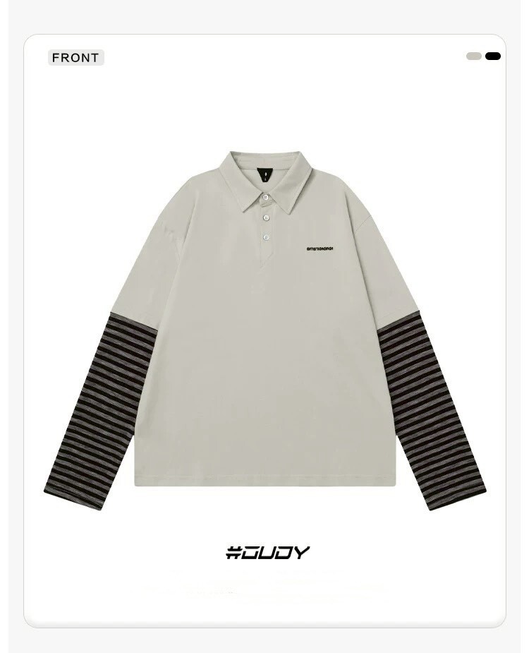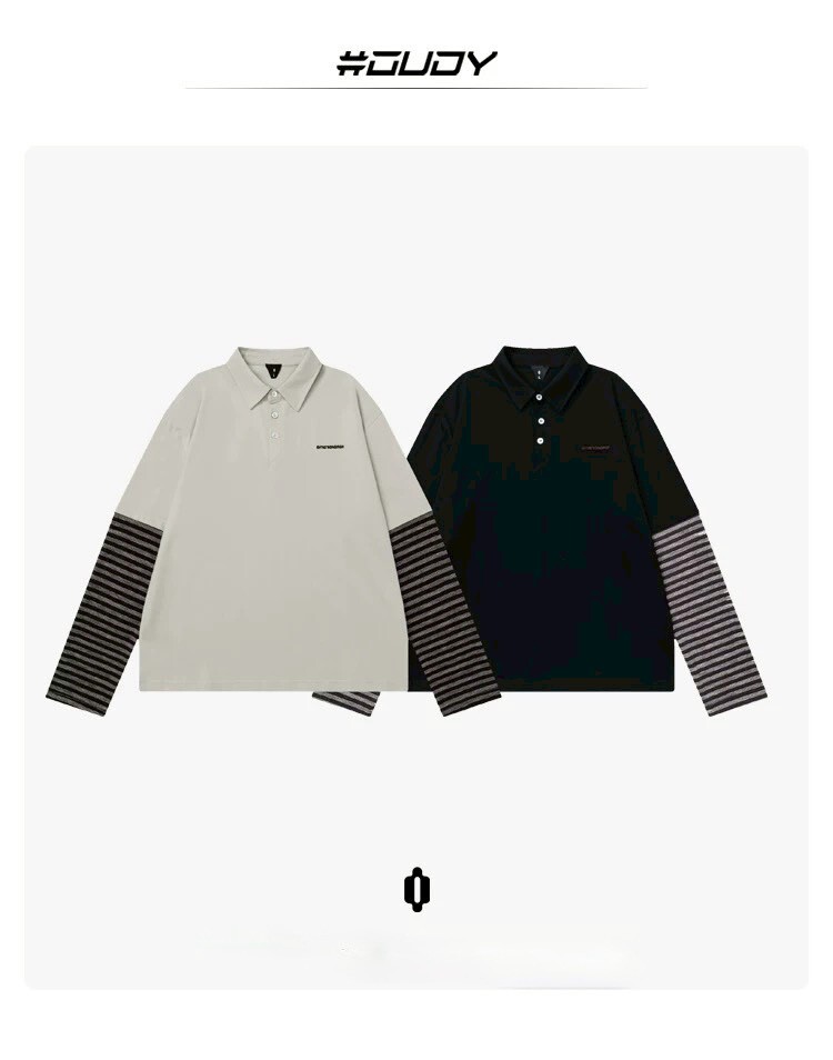 OVDY 假兩件 條紋拼接 polo