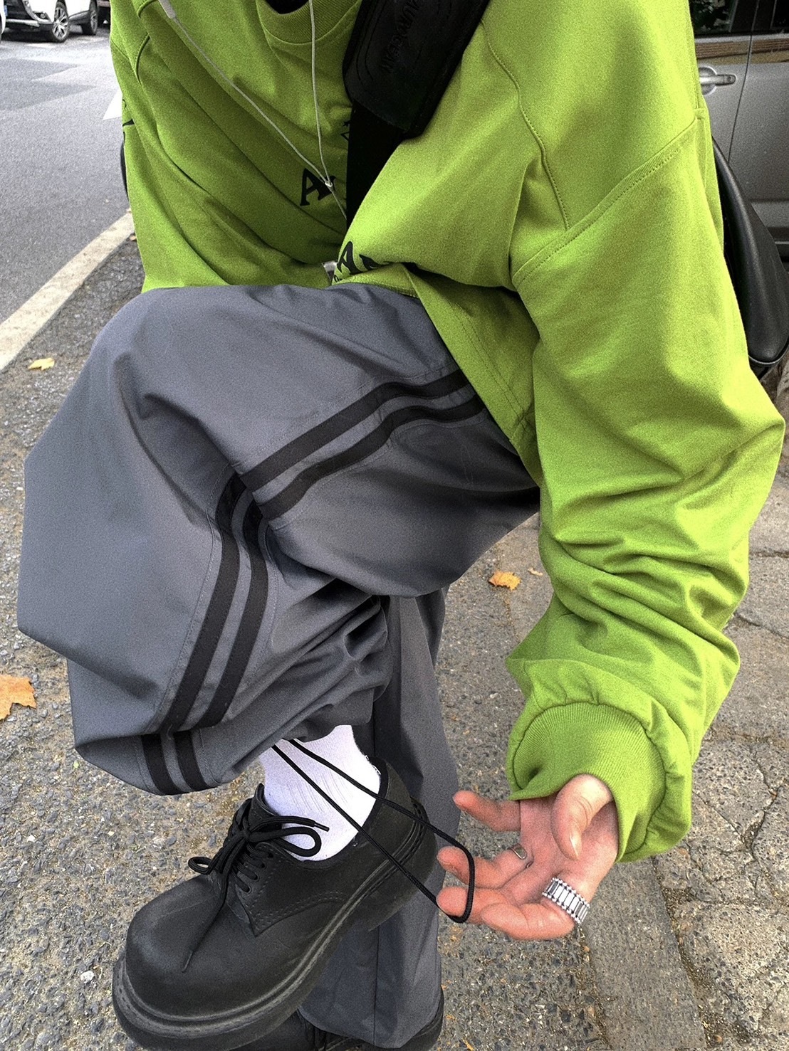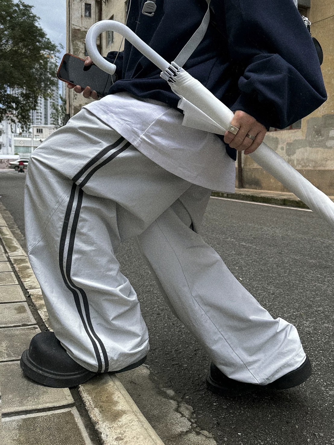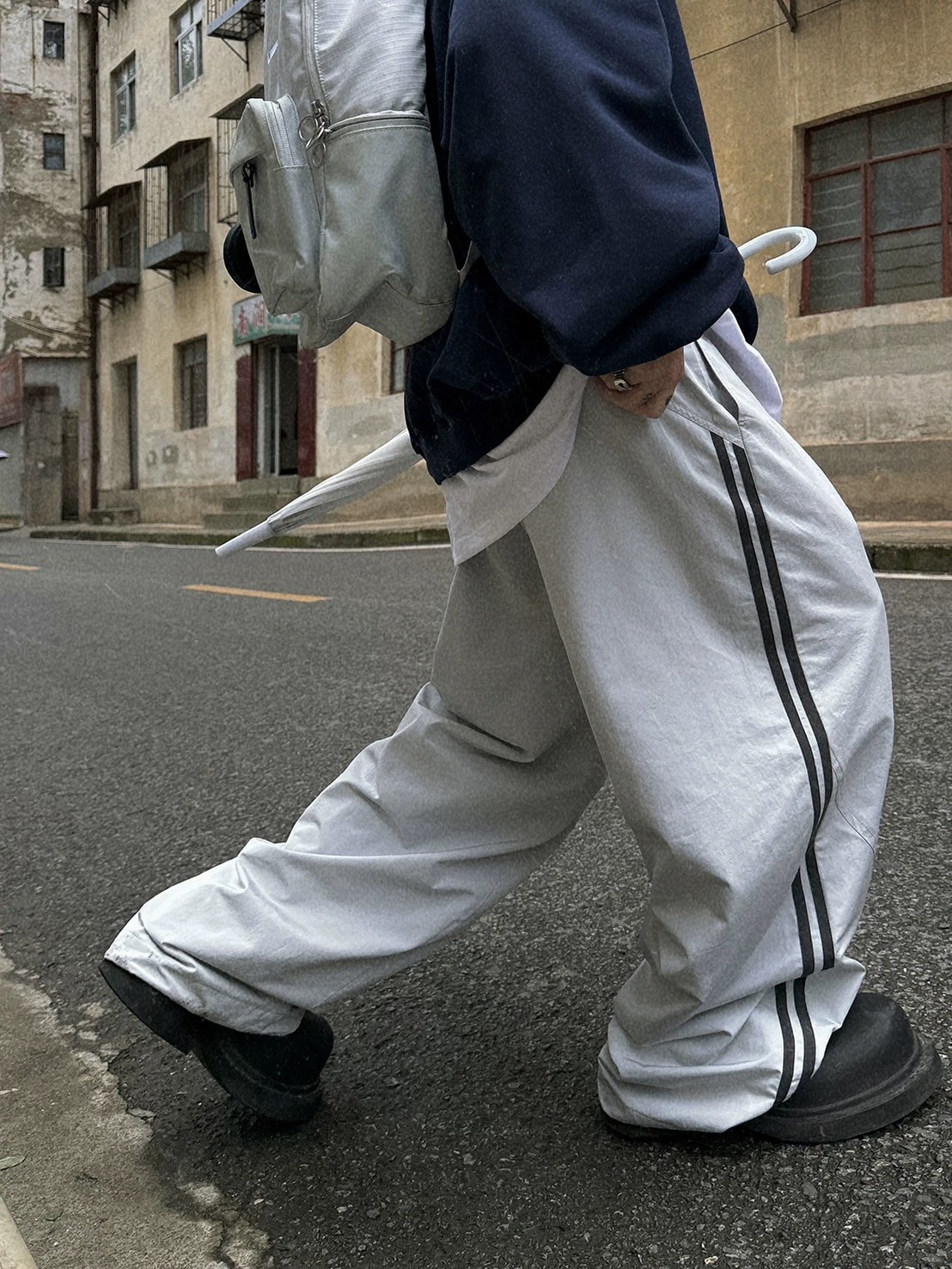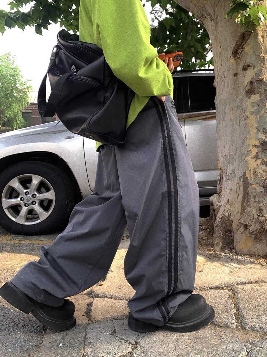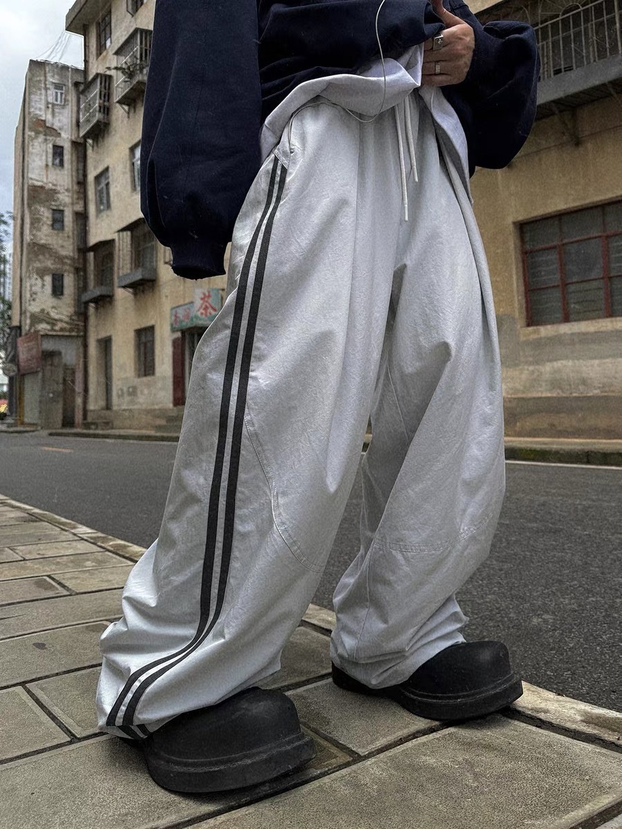 Aurocean 雙槓尼龍寬鬆解構拼接運動褲