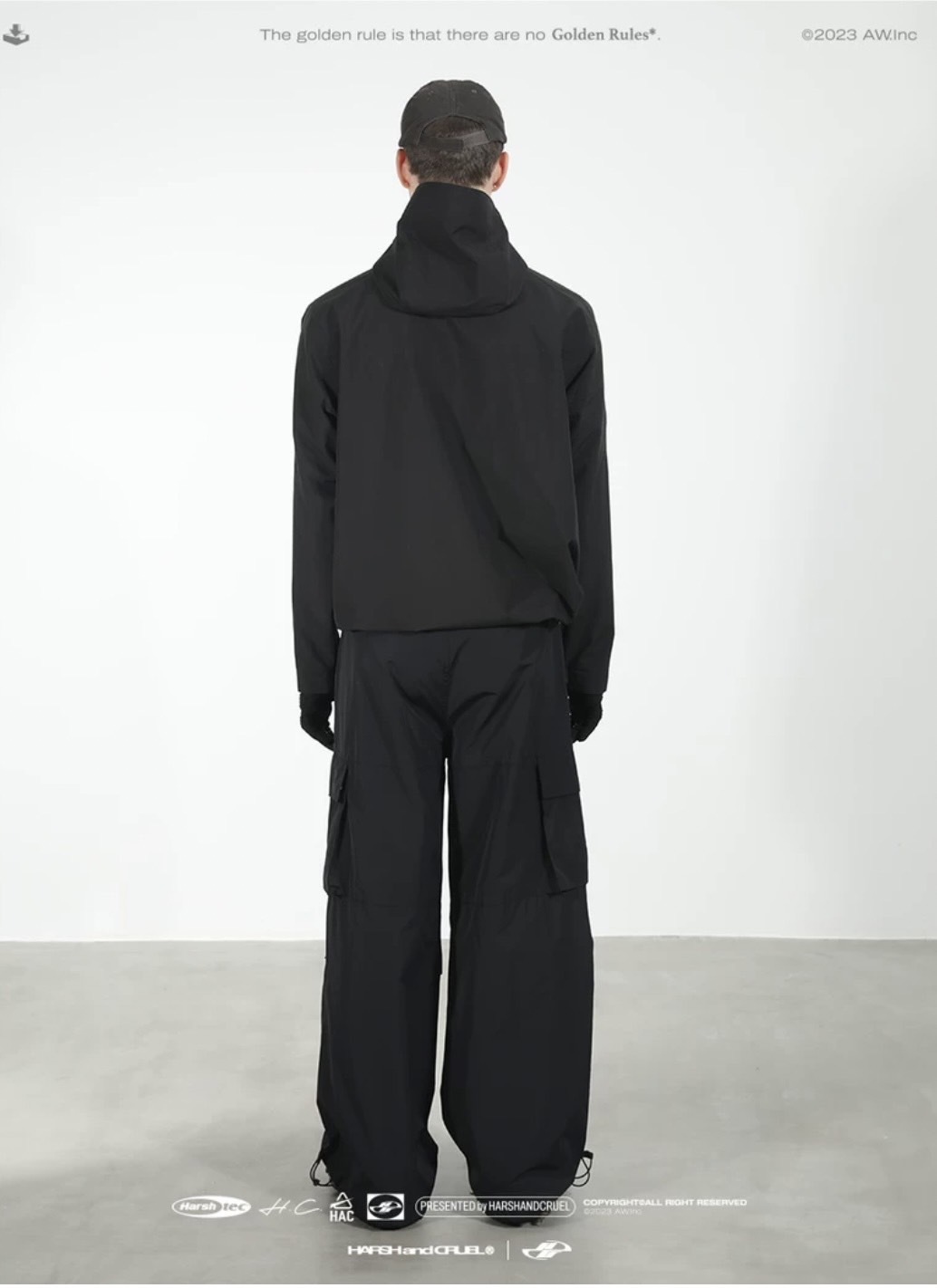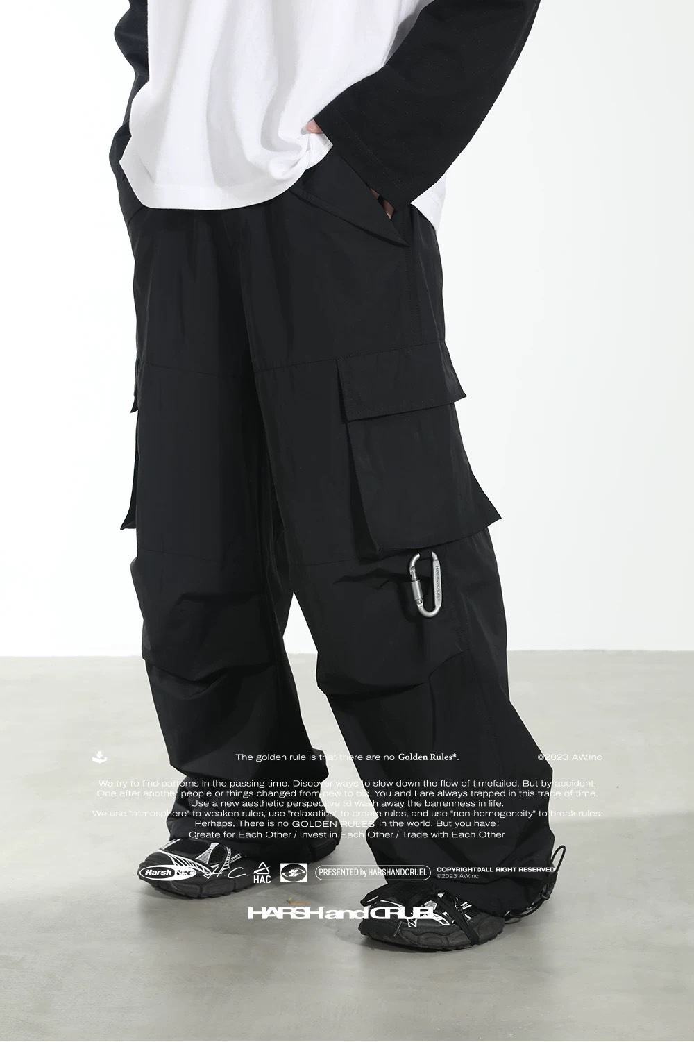 harsh and cruel 美式街頭尼龍布料登山扣口袋直筒工裝褲