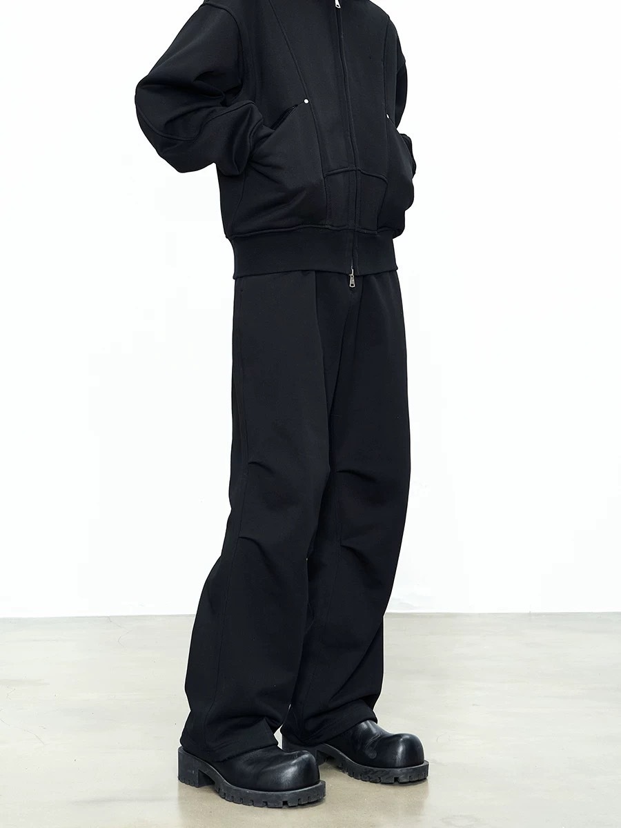 CATSSTAC 重磅打褶衛簡約直筒束腳寬鬆闊腿休閒長褲