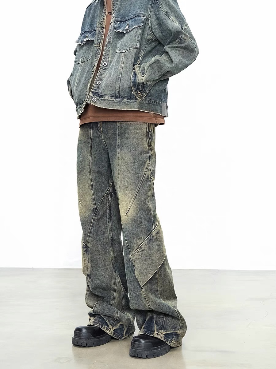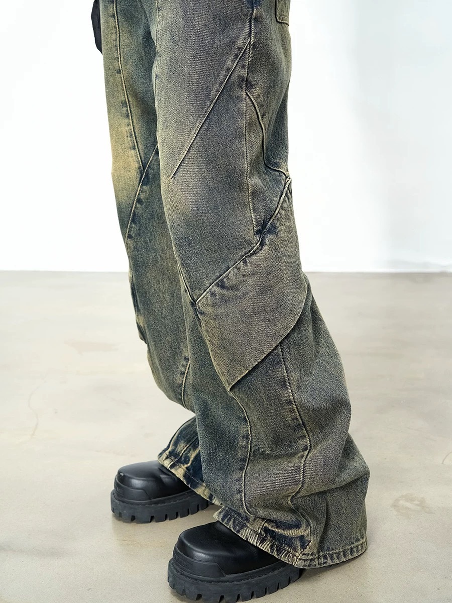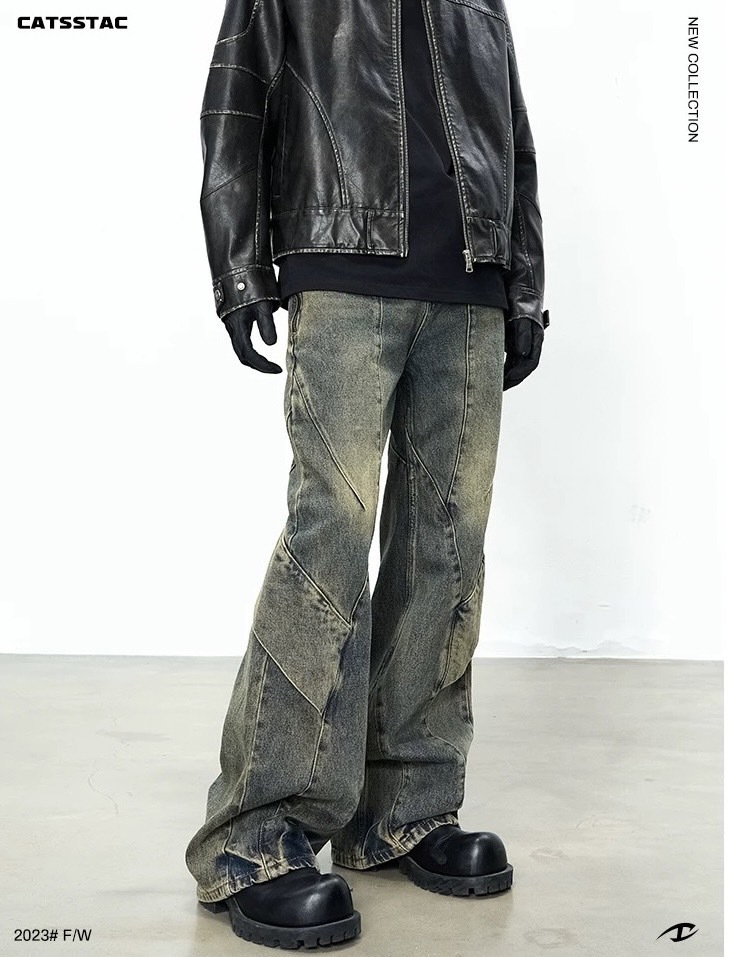 CATSSTAC 髒洗活片寬水洗直筒牛仔褲