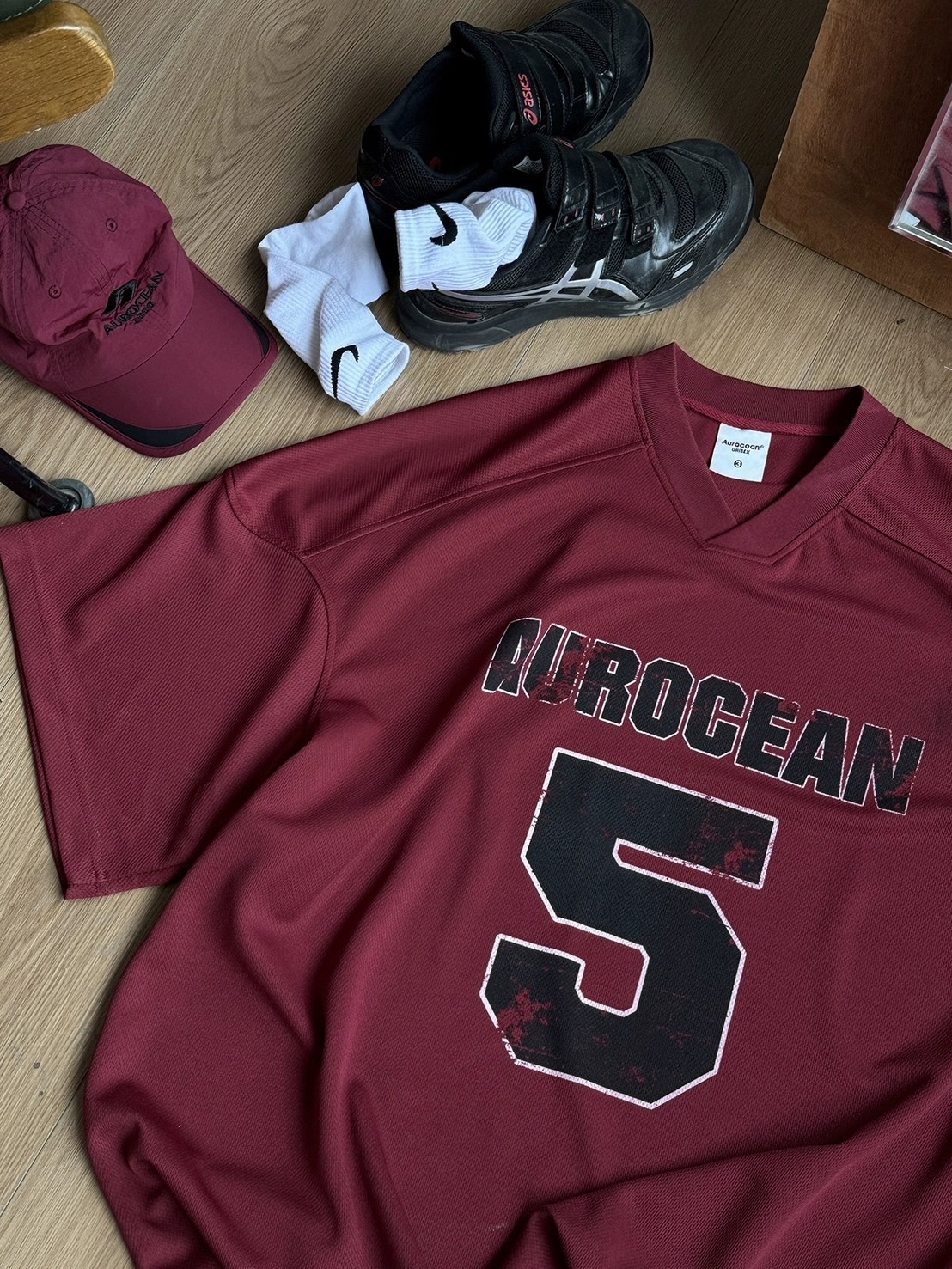 AUROCEAN 做舊印花紅色鳥眼球衣T
