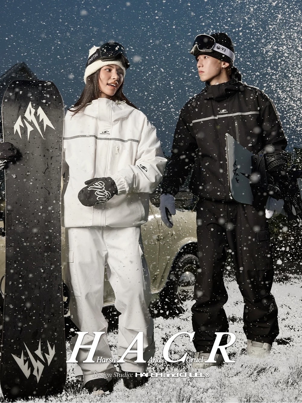harshandcruel 復古運動保暖寬鬆可調整刺繡登山滑雪套裝